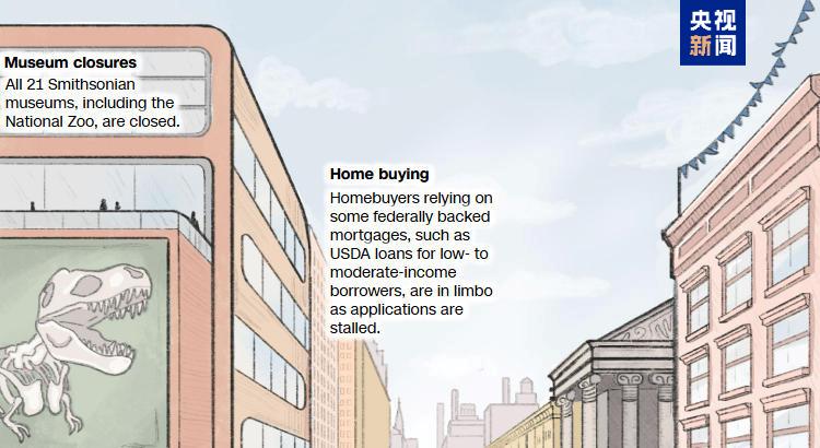 有美国媒体发布了一张图,解读政府“停摆”给美国社会生活带来的9大项影响。