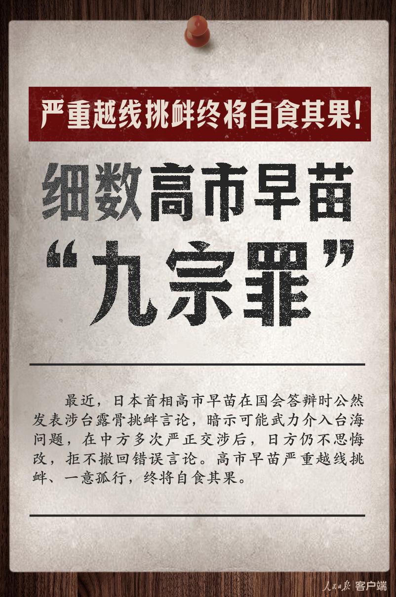 (原标题:严重越线挑衅终将自食其果!细数高市早苗“九宗罪”)