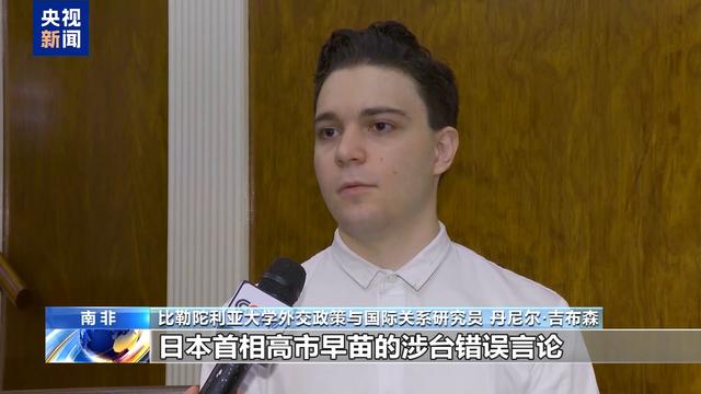 比勒陀利亚大学外交政策与国际关系研究员 丹尼尔·吉布森:在我看来,日本首相高市早苗的涉台错误言论具有煽动性。日本可能希望通过展示“强硬姿态”,提升自己在特朗普政府眼中的价值,这是一种非常危险的策略。日方的错误言论非常危险,我认为日方应三思而后行。