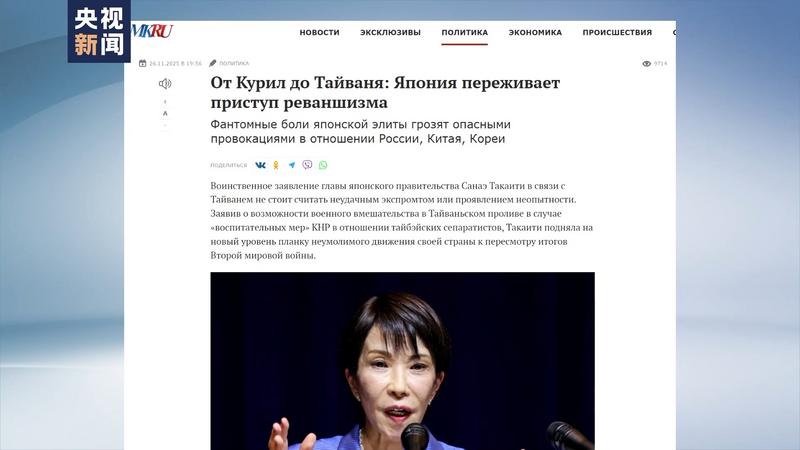 此外,俄罗斯《莫斯科共青团员报》刊文指出,日本首相高市早苗此前发表的涉台错误言论并非失言,而是日本持续推动修正二战战败结果的又一动作。文章警告,日本的扩军、谋求核武等倾向可能危及地区安全,呼吁俄中及周边国家加强协调,抵制日本复活军国主义的动向。