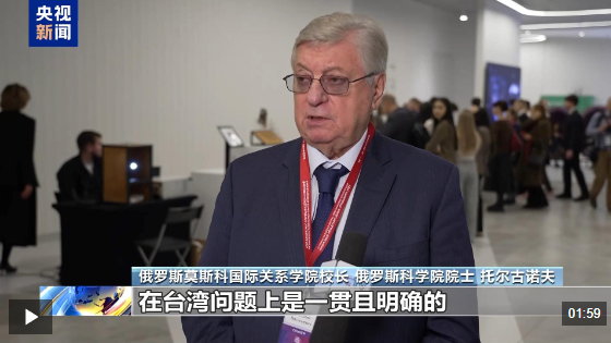 俄罗斯莫斯科国际关系学院校长 俄罗斯科学院院士 托尔古诺夫:俄罗斯和俄罗斯外交的立场在台湾问题上是一贯且明确的,台湾是中华人民共和国的组成部分。围绕此议题的任何操弄,我认为不仅完全不合理而且极其危险。当前局势下,军事化是对整个区域安全都造成极大危险的因素,尤其当这种军事化还与台湾周边的局势相关联。
