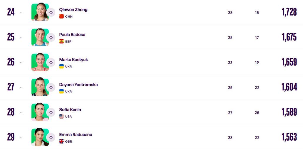 目前,在WTA女单排名中,郑钦文位列第24。由于伤病,她的位次可能继续下降。