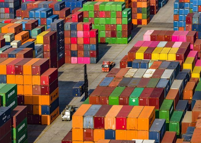 2025年12月8日拍摄的南京港龙潭港区集装箱堆场(无人机照片)。新华社发(辛一摄)