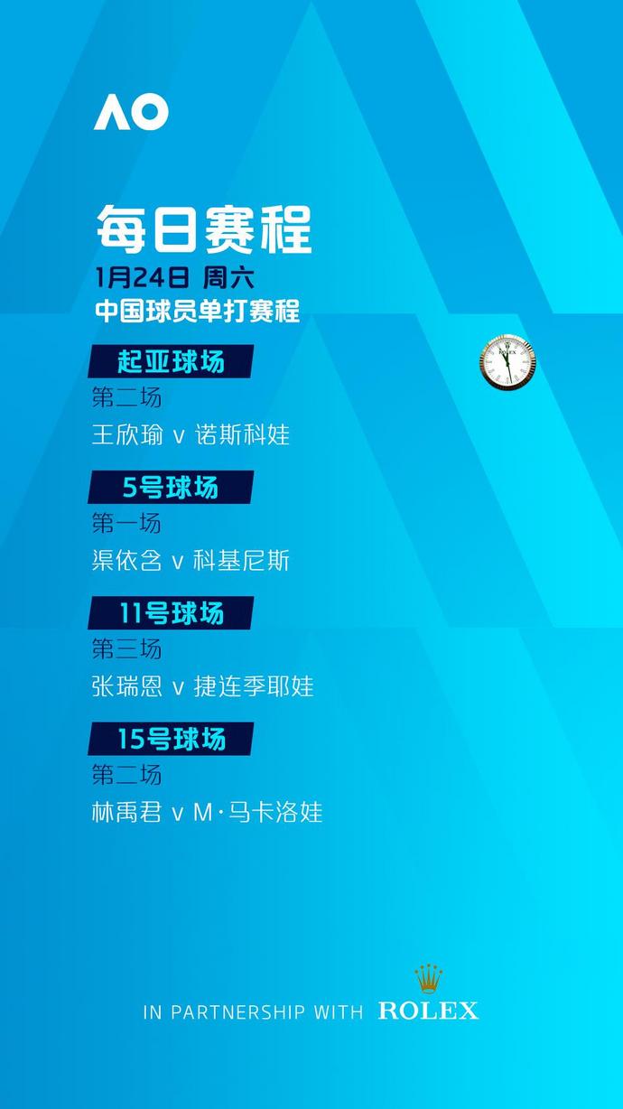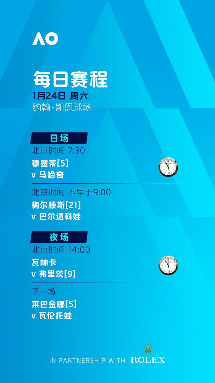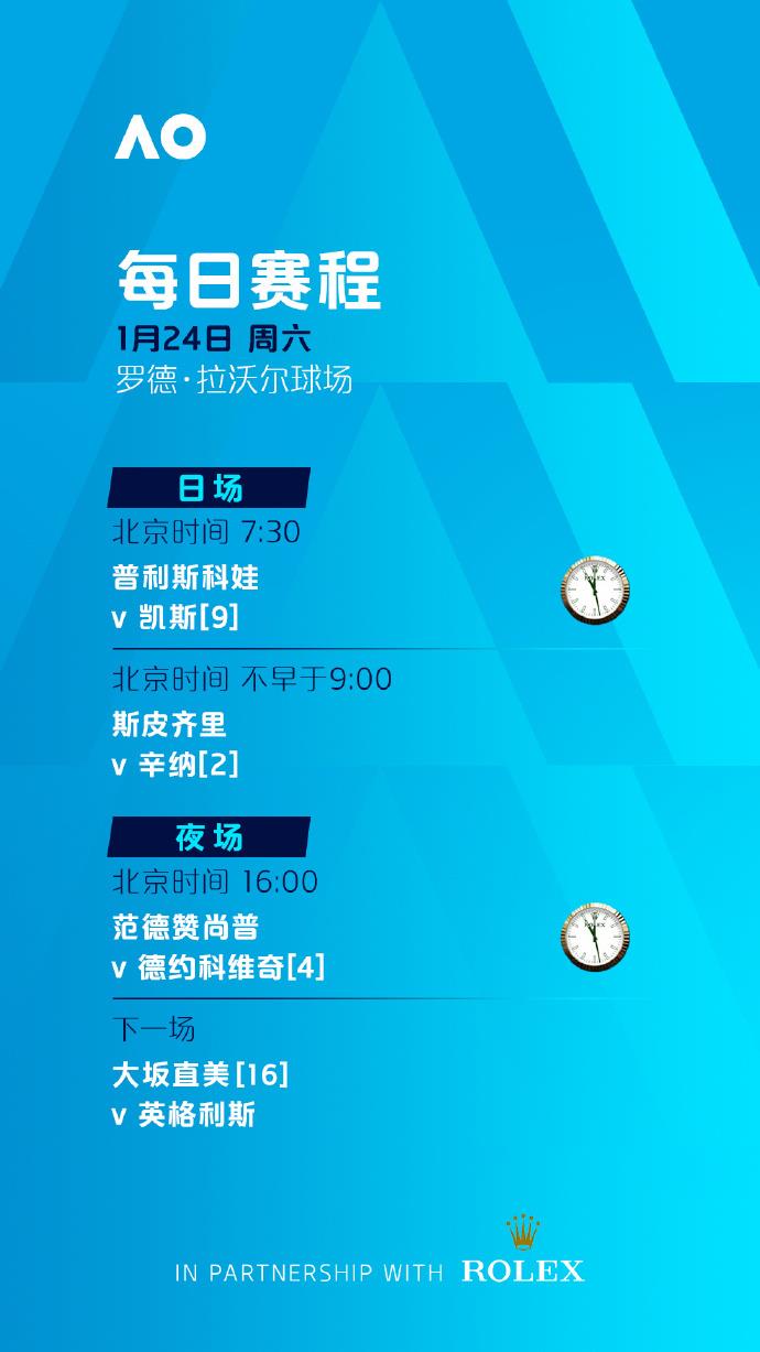 罗德·拉沃尔球场、玛格丽特·考特球场将从北京时间7:30开打,其余球场将分别从北京时间7:00和7:30开打。