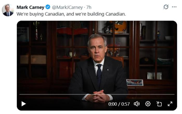 加拿大广播公司(CBC)指出,虽然卡尼没有直接提及美国,但近一分钟的视频以卡尼的这样一段话结尾:“我们无法控制其他国家的行为。我们可以成为自己最好的客户。我们将购买加拿大产品。我们将用加拿大产品来建设国家。我们将共同建设一个强大的加拿大。”