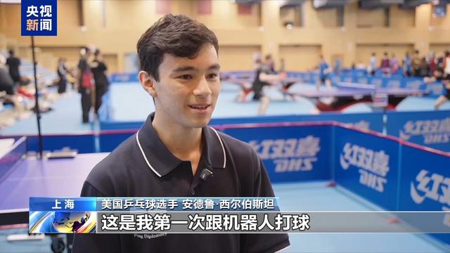 美国乒乓球选手 安德鲁·西尔伯斯坦:这是我第一次跟机器人打球,特别有意思,我都打出汗了。