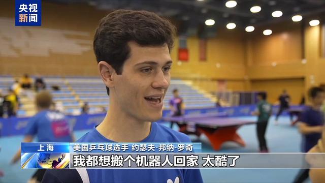美国乒乓球选手 约瑟夫·邦纳·罗奇:我都想搬个机器人回家,太酷了。