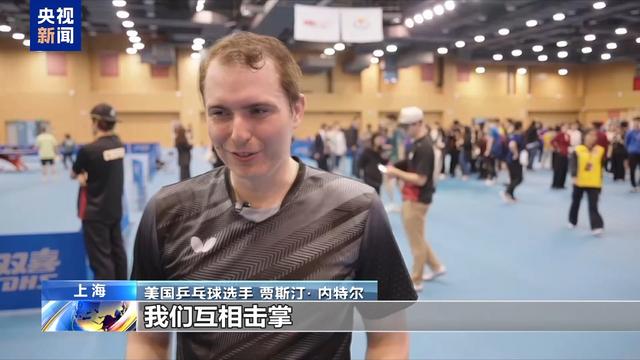 美国乒乓球选手 贾斯汀· 内特尔:我们互相击掌,为彼此欢呼,互相帮助,因为我们都很欣赏对手。