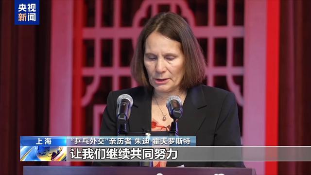 “乒乓外交”亲历者 朱迪·霍夫罗斯特:体育是一种共通的语言。让我们继续共同努力,将“乒乓外交”精神传承给新的一代。