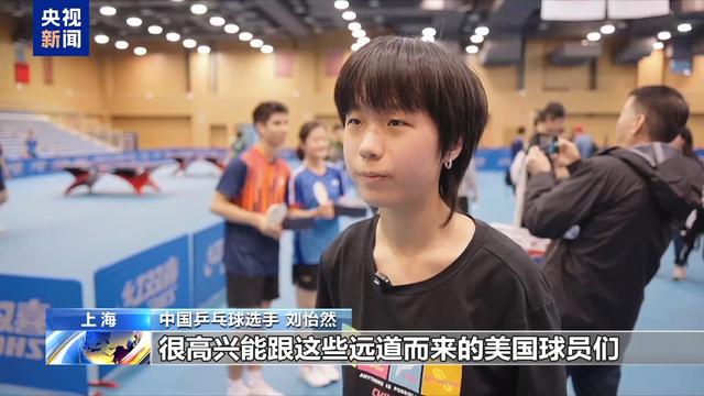 中国乒乓球选手 刘怡然:很高兴能跟这些远道而来的美国球员们一起交流、比赛。他们水平也不错。