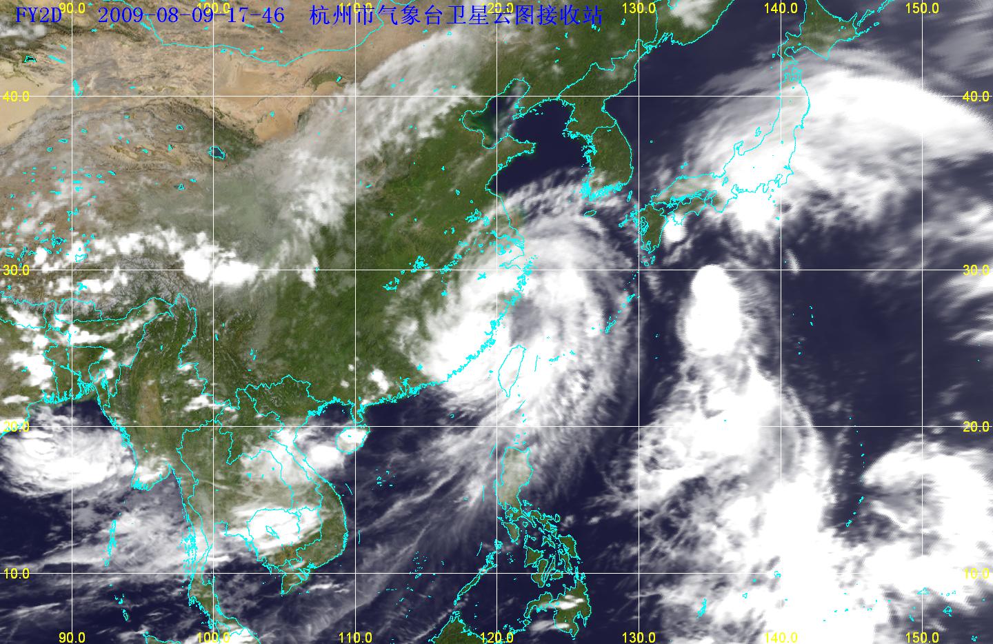 杭州市气象台9日18时发布强热带风暴警报:"莫拉克"于16时20分在福建省霞浦县登陆,18时位于杭州以南392公里的福建省霞浦县境内,也就是北纬26.7度,东经120.0度,近中心最大风速11级(30米/秒),中心气压975百帕。