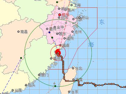 预计未来将以每小时11公里左右的速度向西北偏北方向移动。受其影响,预计我市今天傍晚到明天有大到暴雨局部大暴雨。今天最大东北风7级阵风8-9级,钱塘江口最大风力可达9-10级,请有关方面特别注意。