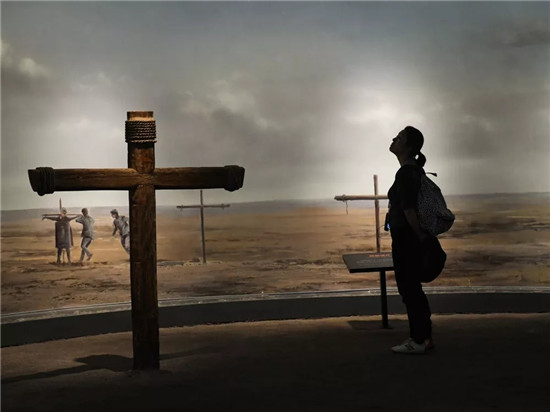 2017年6月23日,一名日本遗孤后代在侵华日军第七三一部队罪证陈列馆拜祭参观。新华社记者王松摄