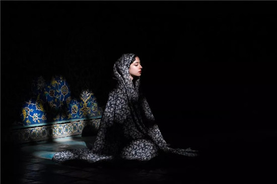 2017年9月16日在伊朗伊斯法罕王侯广场的谢赫洛特芙拉清真寺内拍摄的一名伊朗女子。新华社记者孟涛摄