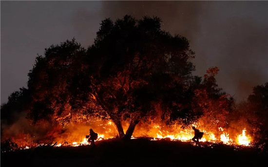 2017年12月11日在美国加利福尼亚州卡平特里亚拍摄的山火。新华社记者李颖摄