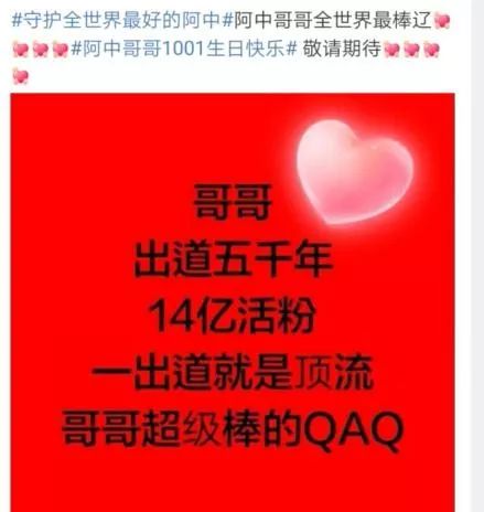 但更有趣的事情还在后面——随着越来越多不同明星的粉丝投入这场普通网民层面的“舆论混战”,这些粉丝们也开始从给某一位明星“应援”,逐渐凝聚成了一体,并开始有了一个共同的“应援”新对象——那就是被ta们“拟人化”、并称为“阿中”和“70岁仔仔”的中国!