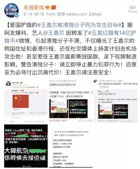 原标题:“守护最好的阿中!”饭圈女孩出征开撕香港“废青”暴徒 大家都知道,近来我国香港特区正遭到一伙极端示威者和妄想让香港从中国分裂出去的暴徒的袭击。比如,前两天他们就在香港机场制造了严重的暴乱,暴力殴打了一名内地游客和一名《环球时报》的记者。 这一暴行也震惊了中外。比如很多爱国爱港的艺人,就纷纷对暴徒的行径进行了谴责,并纷纷在自己开设在境内外的社交账号上,都喊出了被打记者的撑警口号。 可他们也因此成为了被香港的那些暴徒在网络上骚扰、辱骂和威胁的对象。 然而,这些暴徒们却忘了,这些爱国爱港的艺人,可是有着为数众多的“粉丝”的!