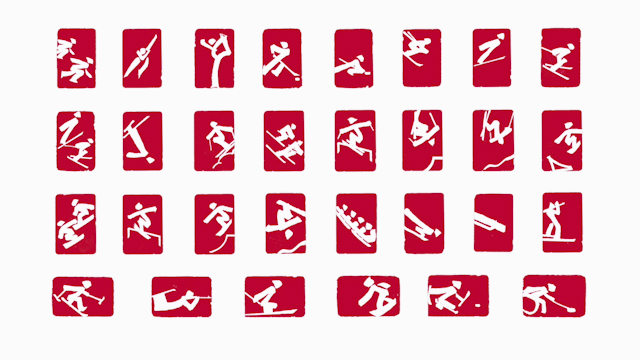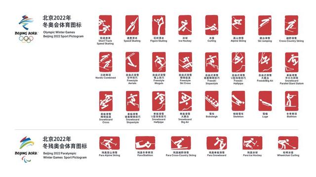 北京冬奥会共有24个体育图标,冬残奥会共有6个体育图标,每枚图标代表一个体育项目。这些“小红人”与北京2008年奥运会会徽“中国印”遥相呼应,将现身冬奥场馆、特许产品、交通工具、城市景观当中,成为冬奥“代言人”,更掀起冬奥“新国潮”。