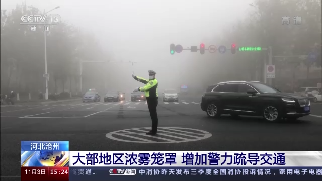 河北沧州大部地区浓雾笼罩 增加警力疏导交通