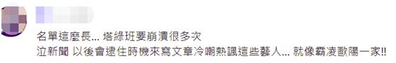 也有网友说,名单这么长,绿营要崩溃很多次,“三立新闻”以后会逮住机会写文章冷嘲热讽这些艺人。↓