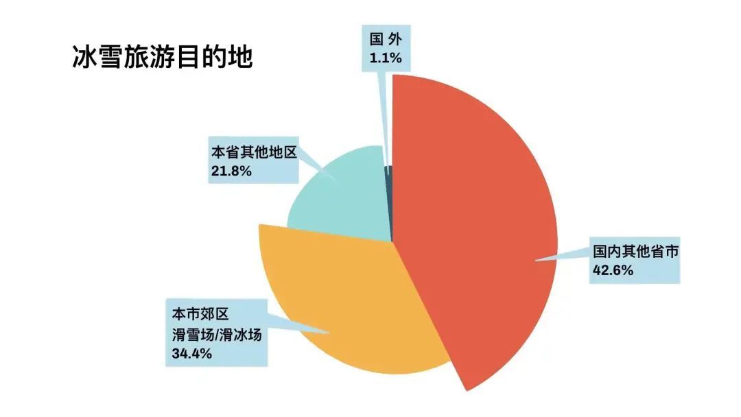 在冰雪旅游目的地的选择上,本省内部活动的占到了一半以上。其中,选择本市短途冰雪旅游项目的,更是占到了所有人群的三分之一还要多,短途冰雪旅游项目受到追捧。