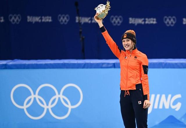 2月11日,荷兰选手苏珊娜·舒尔廷(前)在北京冬奥会短道速滑女子1000米决赛中夺冠。新华社记者鞠焕宗摄