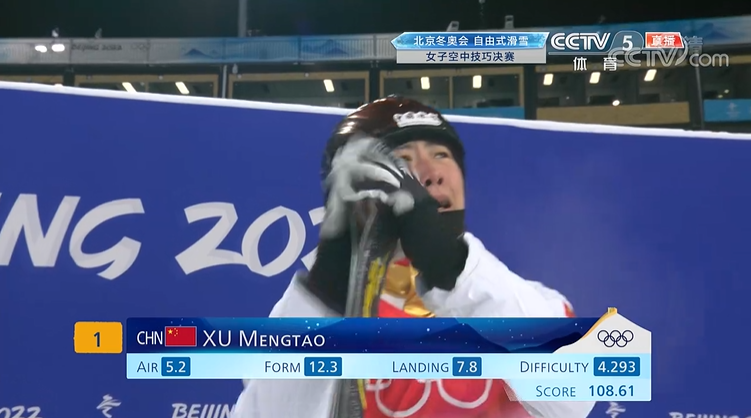 14日早上进行的自由式滑雪女子空中技巧资格赛上,徐梦桃凭借着第一跳的完美发挥拿到了101.1的高分位列资格赛第一轮第三名,直接进入决赛。