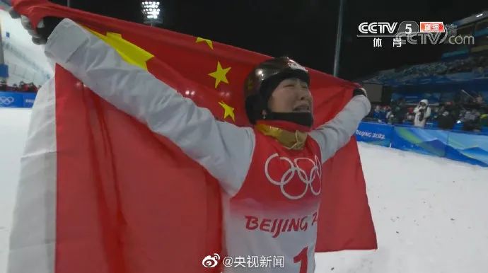 赛后她在现场身披国旗大喊:我们赢啦!!!