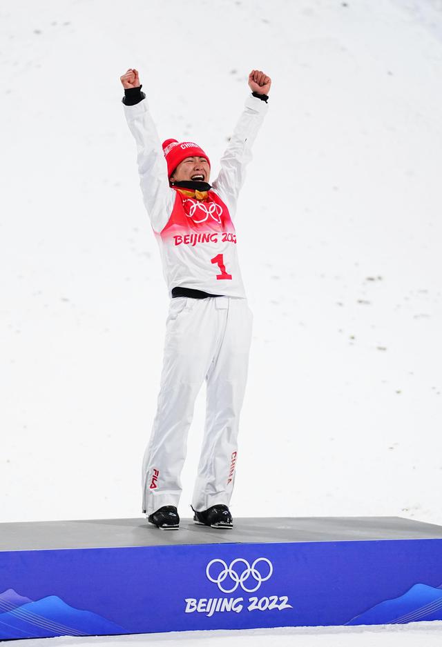 2月14日,中国选手徐梦桃在比赛后庆祝。新华社记者 肖艺九 摄