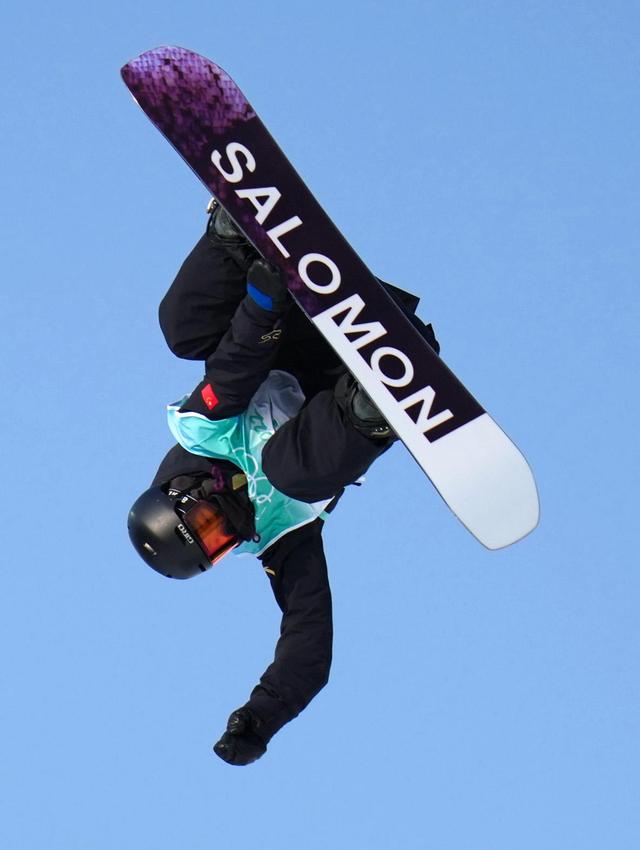 2月15日,中国选手荣格在北京冬奥会女子单板滑雪大跳台比赛中。新华社记者李一博摄
