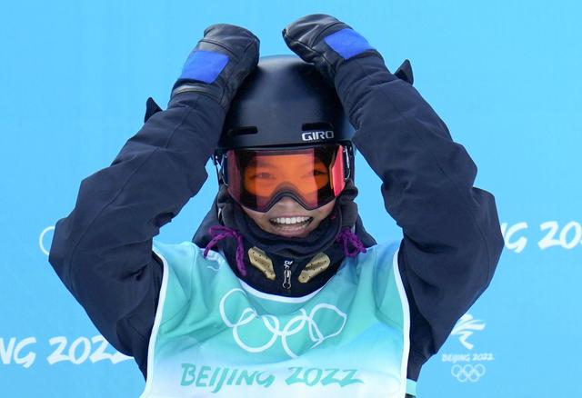 2月15日,荣格在北京冬奥会女子单板滑雪大跳台比赛后。新华社记者李一博摄