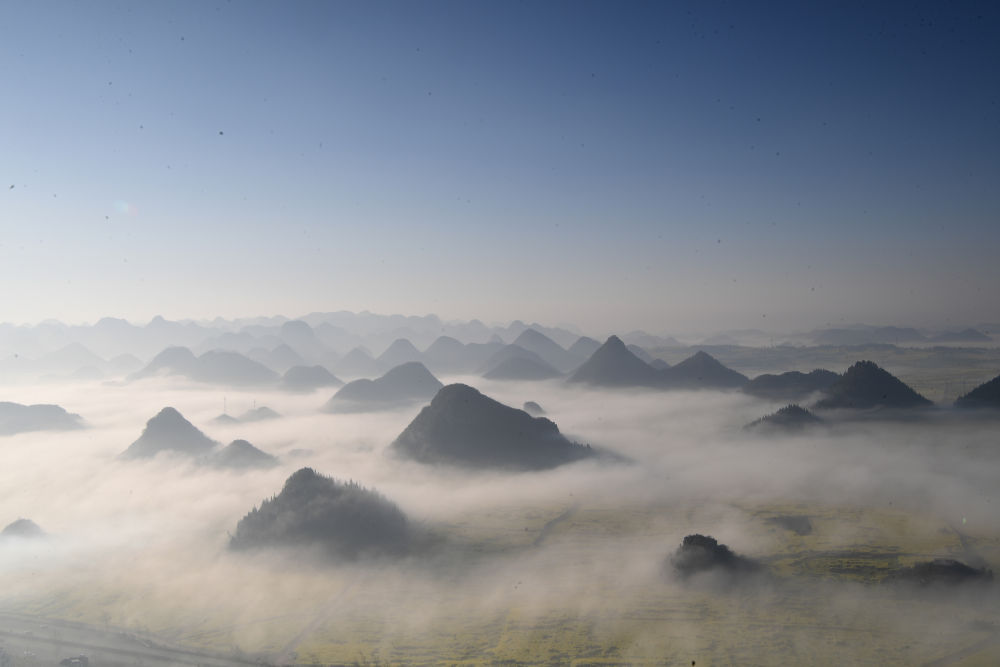 3月3日拍摄的罗平县壮观的油菜花海。