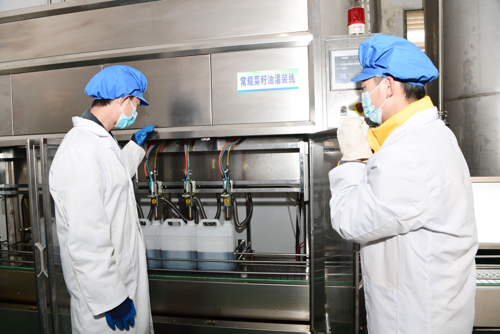 罗平县成天油脂有限公司的菜籽油灌装车间(3月1日摄)。
