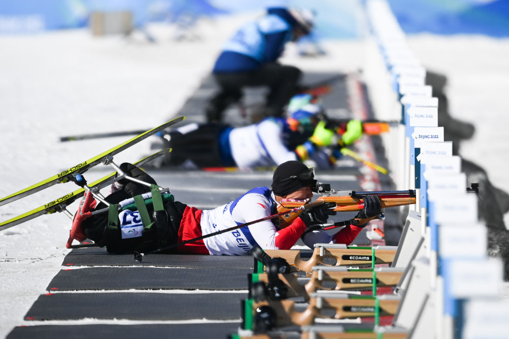 3月5日,中国选手刘子旭在北京2022年冬残奥会残奥冬季两项男子短距离坐姿比赛中。新华社记者万象摄