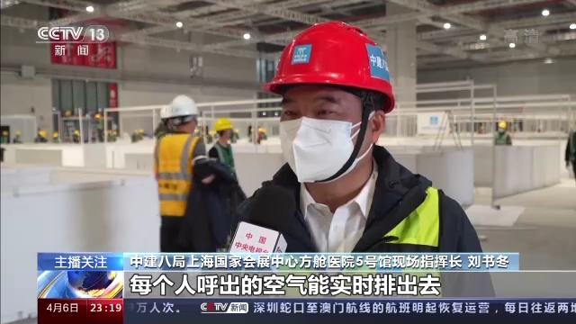 中建八局国家会展中心(上海)方舱医院5号馆现场指挥长 刘书冬:150立方米每小时就是能确保(在)这个空间里,每个人呼出的空气能实时地排出去,并能(同时)呼吸到新鲜空气。