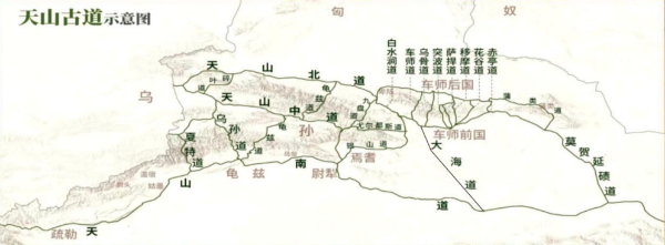 乌孙古道北衔准噶尔盆地,南控塔里木绿洲,是贯通天山南北的咽喉,历史上许多游牧民族都要争夺这块宝地。公元前的汉武帝为了对抗匈奴而与乌孙结盟;隋唐时期西突厥控制天山统治塔里木盆地;唐代西征突厥及与突骑施的交好等,都是通过乌孙古道来实现的。