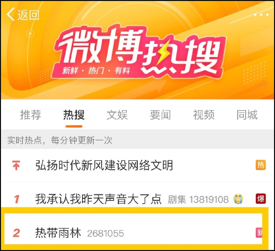 8月29日晚,#热带雨林#话题词冲上微博热搜——