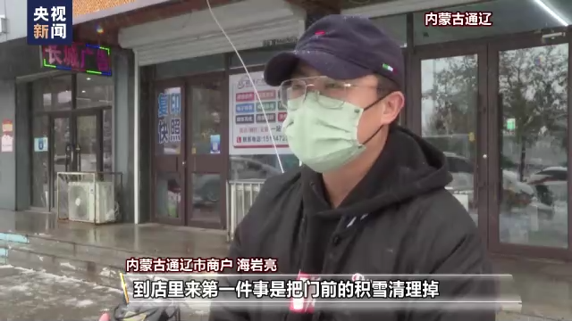 内蒙古通辽市商户 海岩亮:到店里来第一件事是把门前的积雪给清理掉,给自己和路边的行人带来一些方便。