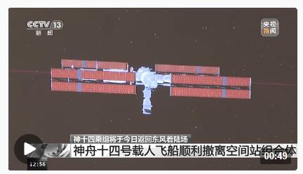 央视新闻客户端 据中国载人航天工程办公室消息,北京时间2022年12月4日11时01分,神舟十四号载人飞船与空间站组合体成功分离。