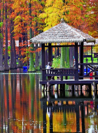 游人在江苏省常熟市尚湖国家城市湿地公园游玩。新华社发
