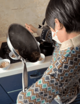 病中的李茜母子吃到了邻居袁光荣送来的热乎饭菜