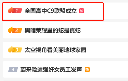 3月14日晚,#全国高中C9联盟成立#话题冲上热搜第一!引起网友热议。