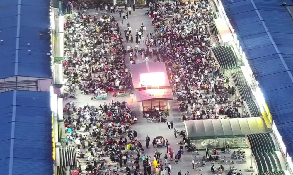 4月14日,夜幕降临,前来淄博临淄大院吃烧烤的人越来越多。(公共视频截图)