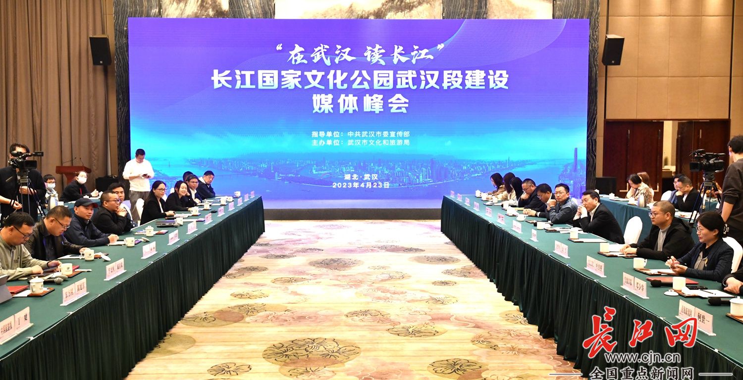 4月23日,由武汉市委宣传部指导、武汉市文化和旅游局主办的“在武汉 读长江”长江国家文化公园武汉段建设媒体峰会在武汉会议中心举行。这是“沿着长江读懂中国——万里长江行”首站武汉的重要活动。来自长江流域13个省(自治区、直辖市)的东方网、中国江苏网、浙江在线、安徽网、大江网、长江网、红网、华龙网、四川新闻网、多彩贵州网、云南网、中国西藏新闻网、青海新闻网、红星新闻网、龙虎网、杭州网、中国宁波网、合肥在线、南昌新闻网、星辰在线、贵阳网、昆明信息港、汉江网、荆州新闻网、咸宁网负责人参加峰会讨论,长江网承办,并共同发布《长江国家文化公园建设传播协作武汉共识》。