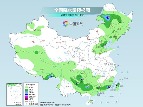 具体来看,今天内蒙古东部、东北地区、华北中东部、新疆北部、西藏、西南地区东部和北部、江南西部和南部、华南大部等地部分地区有小到中雨,局地有大雨或暴雨(50~70毫米),上述部分地区伴有短时强降水,局地有雷暴大风或冰雹等强对流天气。