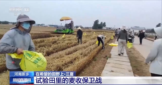 央视新闻客户端消息 5月底,河南多地持续出现阴雨天气,给部分地区“三夏”麦收造成一定影响。为了降低天气变化带来的不利影响,河南各地提前谋划、多措并举,确保成熟的小麦能够及时收获。近日,河南新乡再次迎来阵雨,位于新乡县的中国农业科学院综合试验基地里,科研人员抢在降雨前抢收试验田里的小麦,展开了一场“试验田保卫战”。