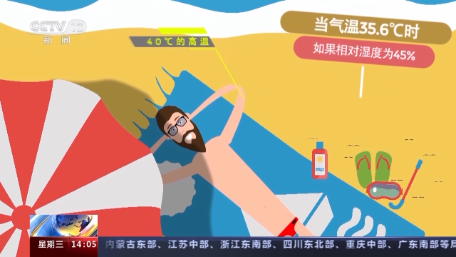原来人体对温度的感觉还受到气温本身之外多种因素的影响,如湿度、风速、太阳辐射、着装甚至心情等。例如当气温35.6摄氏度时,如果相对湿度为45%,人体就会感受到40摄氏度的高温,如果相对湿度达到65%,体感温度将接近50摄氏度,持续的高温天气会使人体感到不适,工作效率降低,中暑、肠道疾病和心脑血管疾病等的发病率增多。