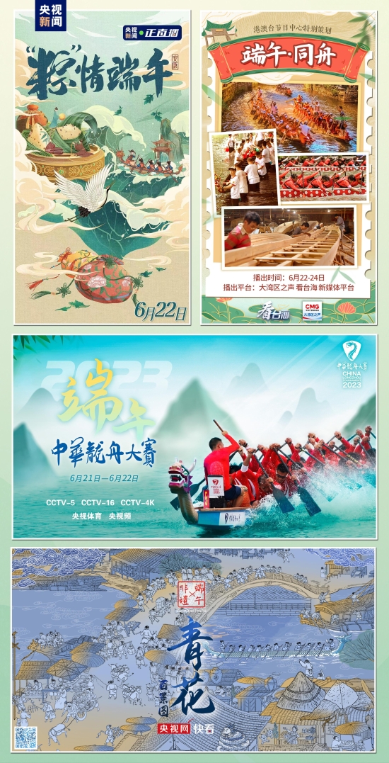 以龙舟激桨为“骨”,传统文化为“血肉”,端午假期,总台央视综合频道(CCTV-1)、新闻频道(CCTV-13)连续三天上午10点并机推出特别节目《奋楫中国 端午安康》,直播龙舟竞渡,展现节日生活,生动体现中华优秀传统文化在新时代的发展与传承。从古老的起龙仪式,到手工制作龙舟,再到“00”后龙舟新一代,大湾区之声、看台海特别节目《端午·同舟》以千年龙舟文化为根基,邀请港澳台青年共划龙舟、同品粽子,凸显同根同源的历史渊源,展现同舟共济的时代精神。作为中国级别最高、竞技水平最高、奖金总额最高的龙舟顶级赛事,《2023中华龙舟大赛》即将在福建福州上演“速度与激情”,通过传统龙舟巡游、龙舟大赛转播、文化活动展示,立体呈现中国传统体育项目新的生命力。