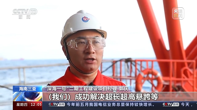 “深海一号”二期工程建设项目经理 郭庆:我们成功解决超长、超高、悬跨等世界级海底管道工程技术难题,自主研发国内首套大管径大壁厚海管全自动焊接装备工艺,实现了10余项技术突破,施工中创造了国内20寸深水海管单日2.65公里的铺设长度最快纪录。