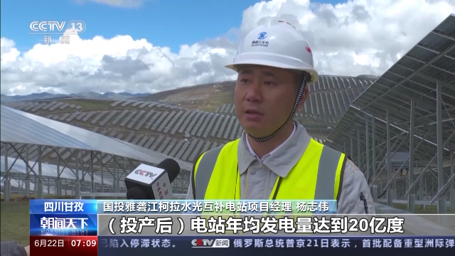 国投雅砻江柯拉水光互补电站项目经理 杨志伟:投产后电站年均发电量达到20亿度,每年可节约燃煤60万吨,减少二氧化碳排放超160万吨。